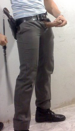 Enquanto isso, ele põe o pau para fora e pede para você punhetá-lo. Ele faz o mesmo por você. Ambos gozam e, na hora de ir embora, ele diz para você não ficar andando sozinho por aí à noite ("é perigoso!"). Para dar maior realismo a essa putaria imaginária seguem abaixo algumas rolas de autênticos homens da lei.